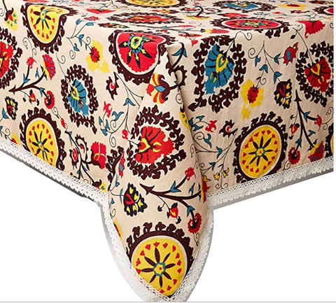 This is characteristic tablecloth highlights rich flower imprinted in premitive material texture, which will add a bit of sprinkle to any current home decor,stain-safe and wear-safe.